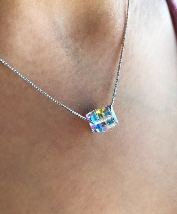 Collar Venecia cubo 6mm cristal Swarovski cadena de Plata 925. Largo 45 cm