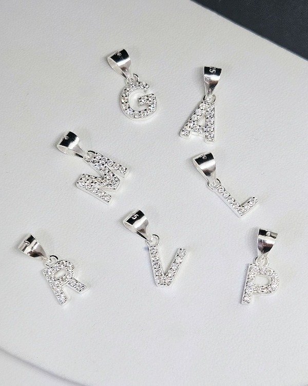 Conjunto cadena veneciana 45 cm plata 925 + dije letra plata 925 y cubic